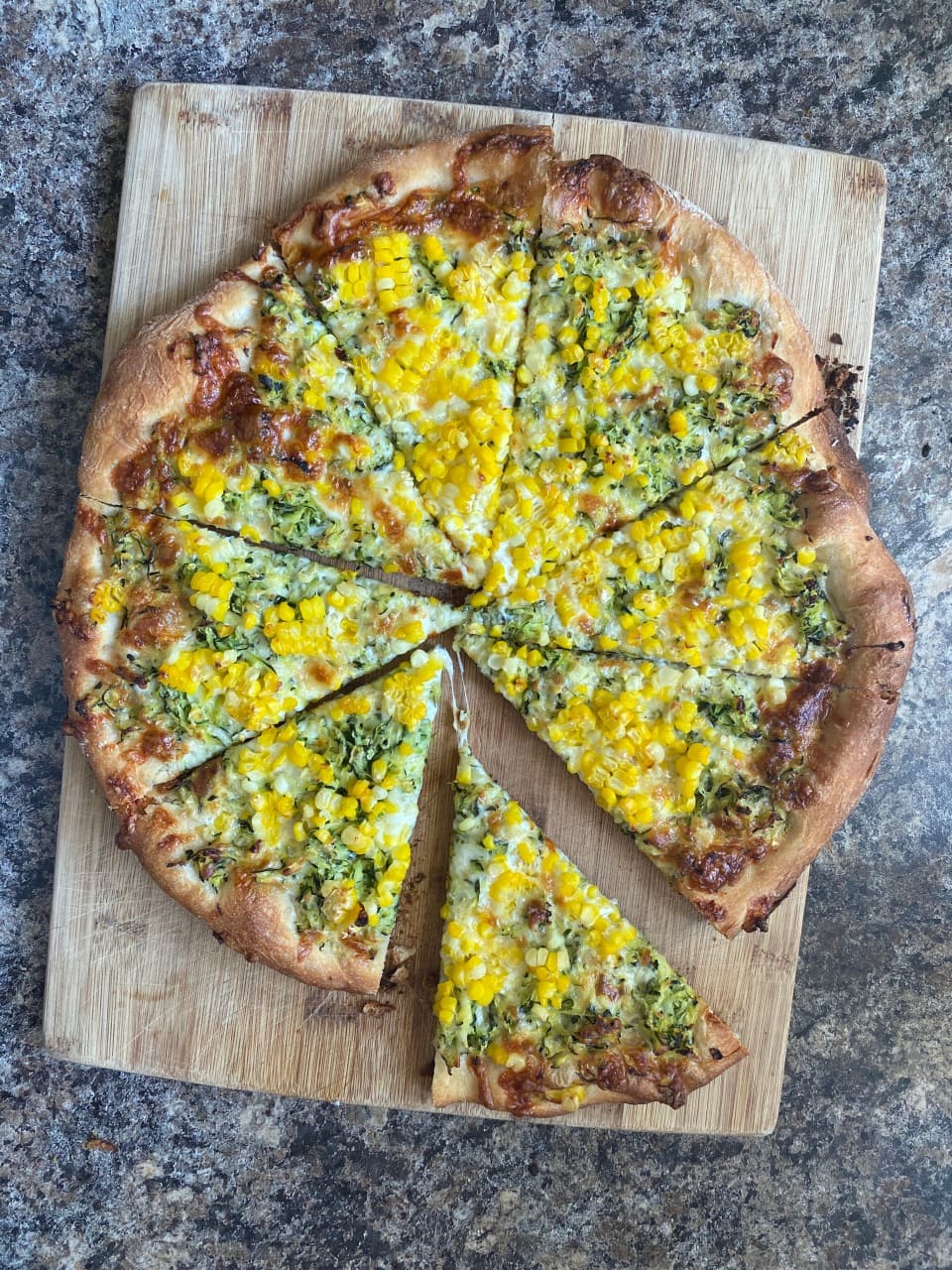 Tomato base, Basil pesto sauce , black pepper, spinach, Garlic herb seasoning, Coriander, Sweet corn, Tomatoes, capsicum, mozzarella, mayo swirl.